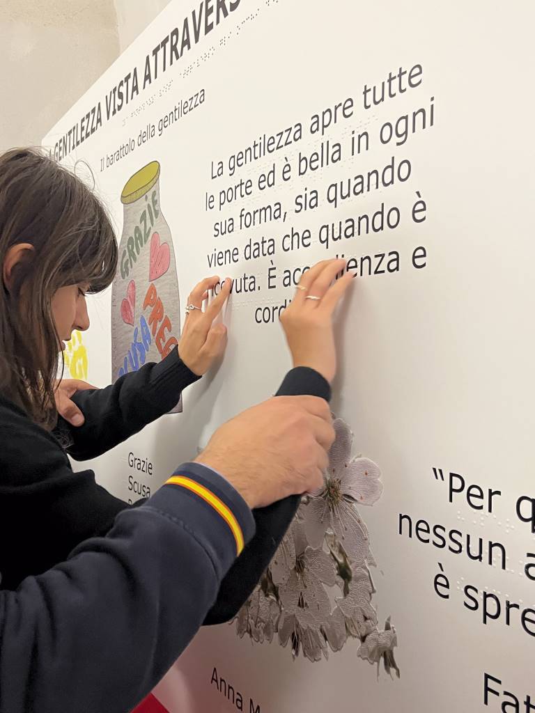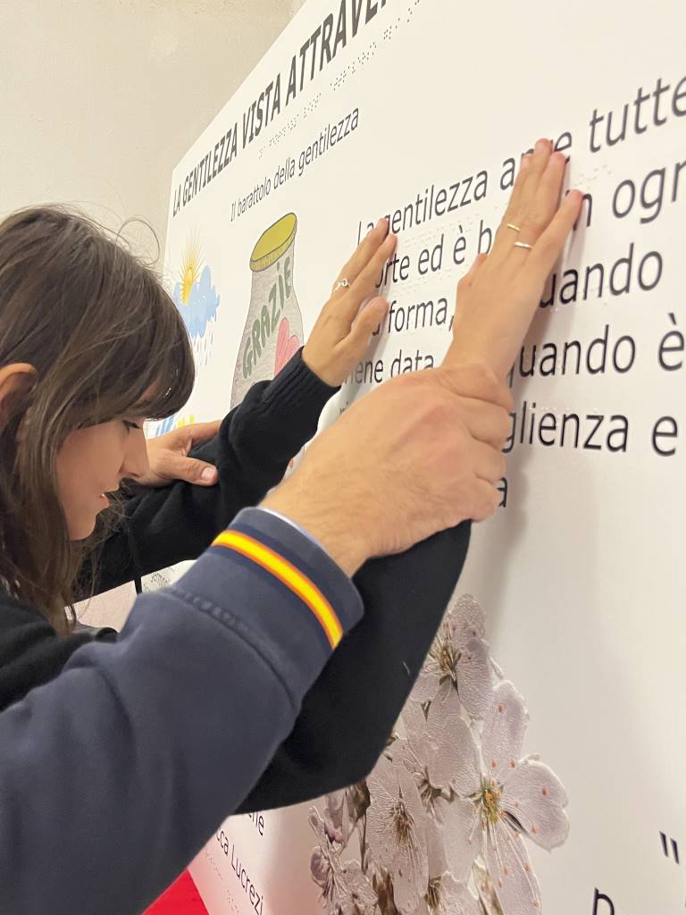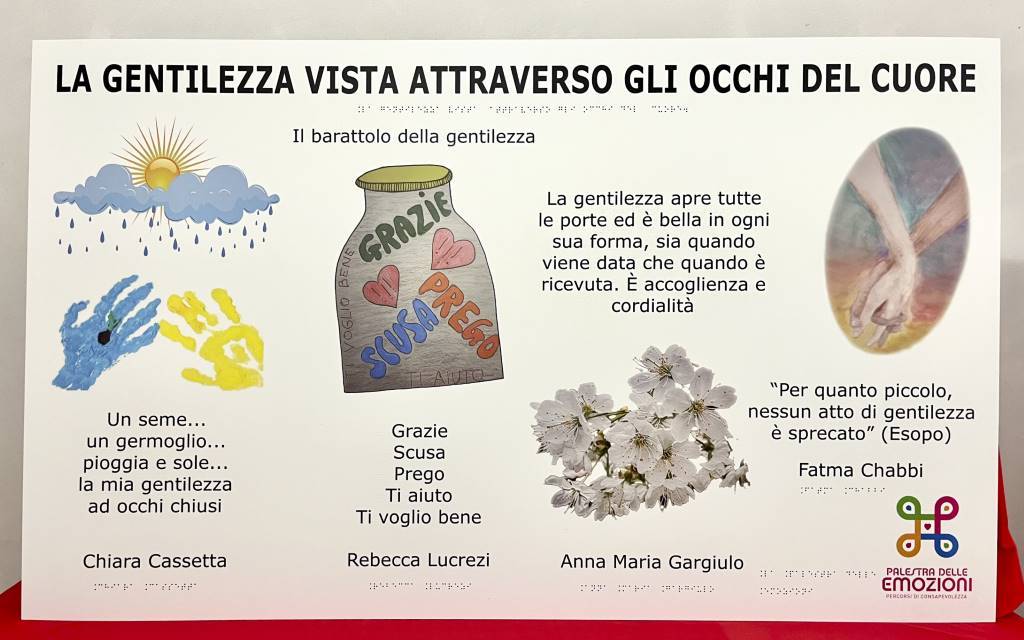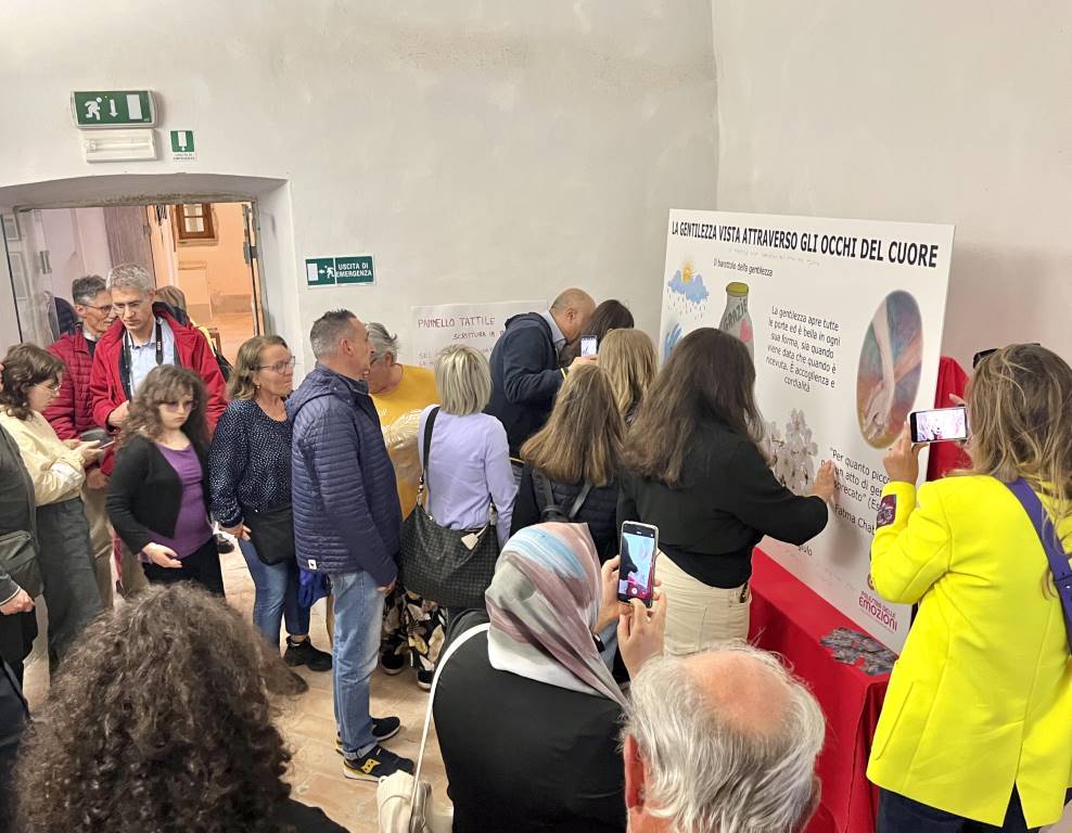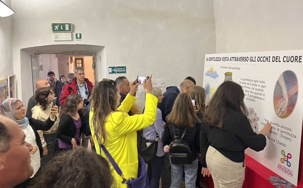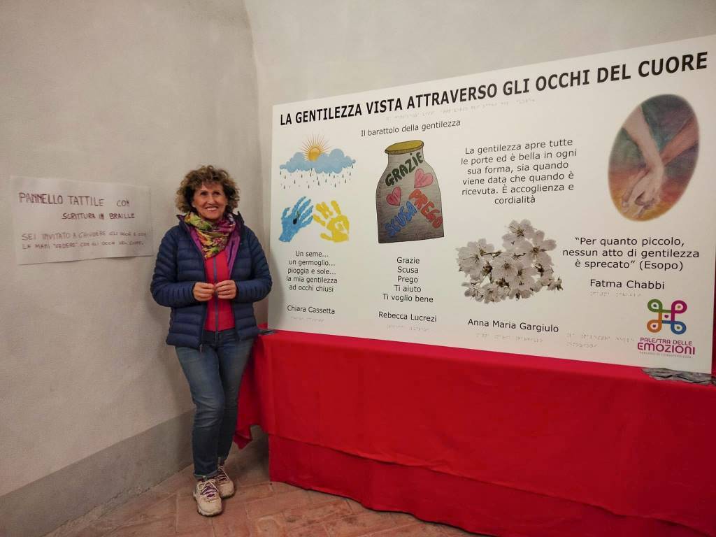 Artisti al Monte, l’esposizione a Palazzo Bourbon di Monte Santa Maria Tiberina, proseguirà fino al 31 Maggio. Dopo il murales dello street art Zoshi dedicato alla gentilezza, domenica, affrontando lo stesso tema, è stata presentata un’opera tattile per i non vedenti: "La gentilezza vista attraverso gli occhi del cuore".